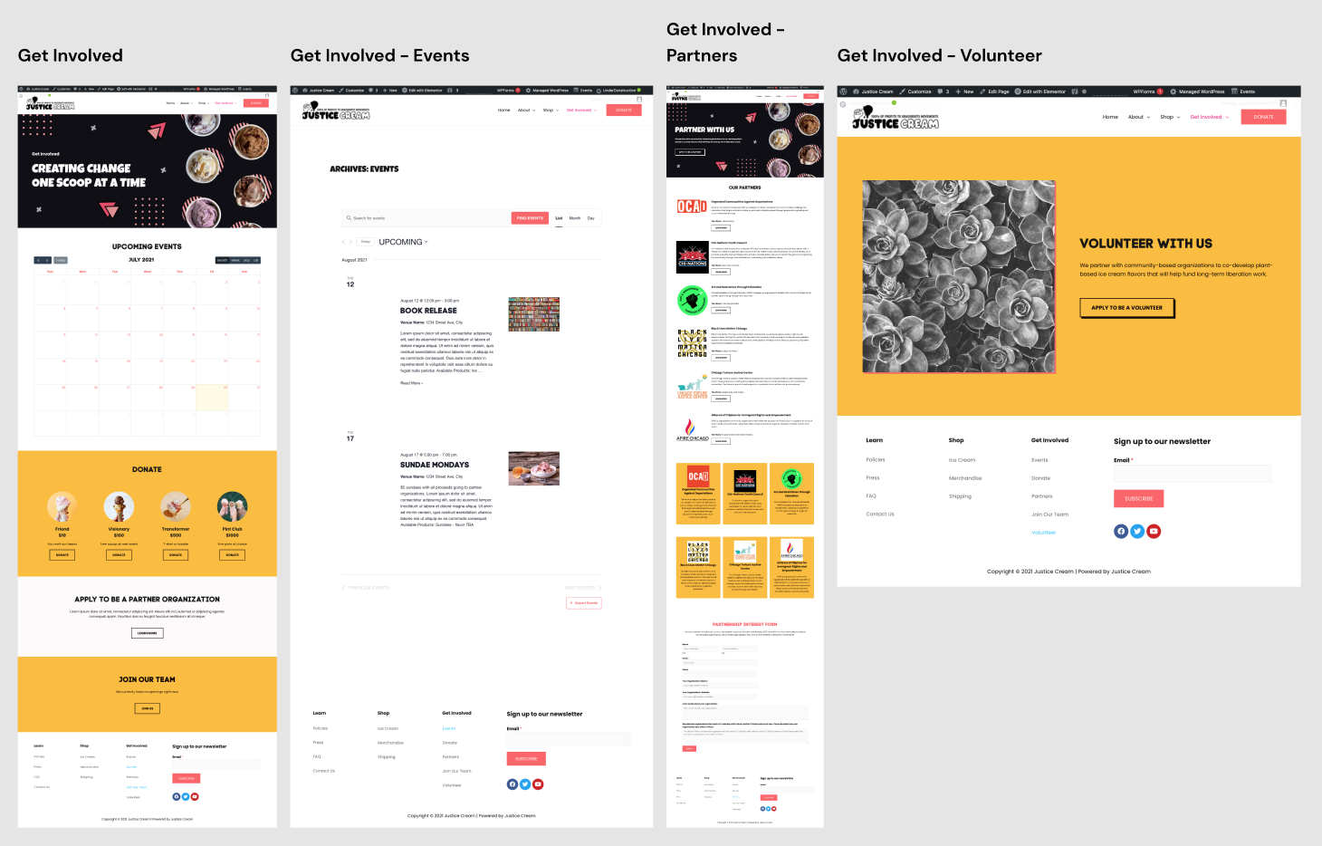 Give the site it’s own personality with Justice Cream’s existing visual branding but make sure it doesn’t overpower the overall message of the organization.