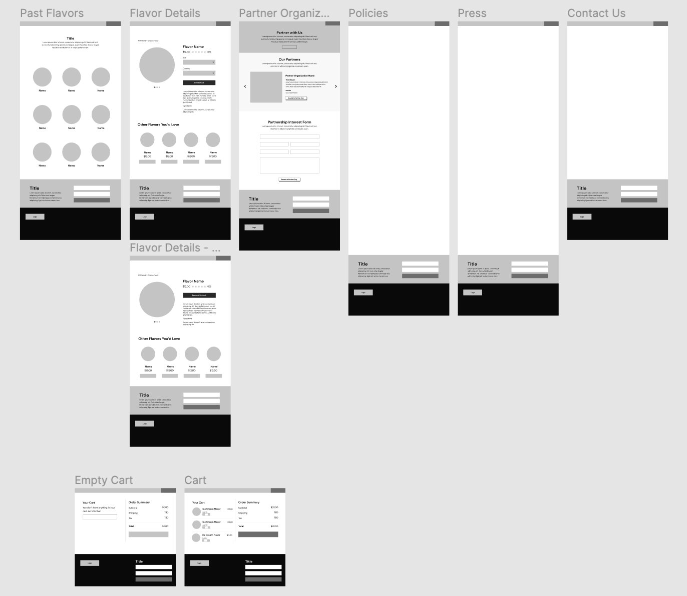 That being said, the team thought it was best to leave the wireframes as low-fi on Figma. Mainly due to Wix already having pre-built website templates, we didn’t want to run into the problem of designing a specific layout on Figma only to have it not translate well onto the website builder. So we kept the Figma wireframes as general guidelines.