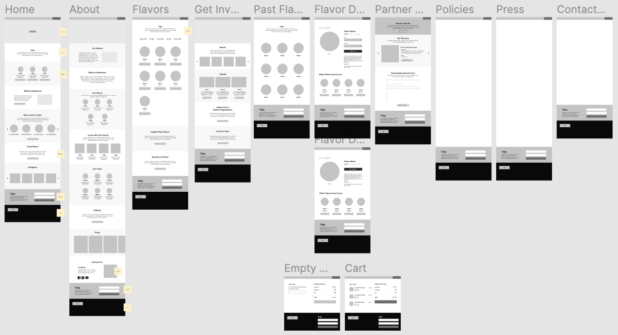 Our team’s goal was to create the non-profits’ own official website. We started from the finding out what their target audience’s needs, creating wireframes matching the existing visual brand and that Justice Cream’s goals for the site were being met.